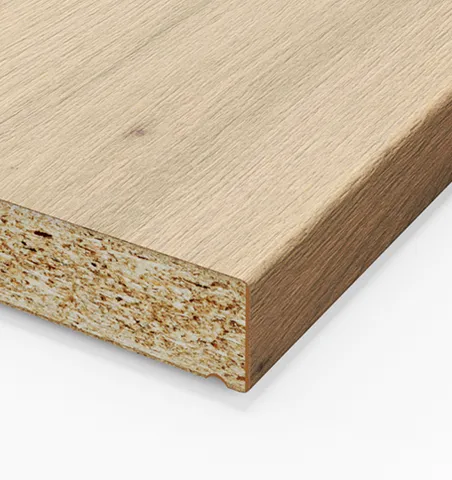 Blat kuchenny P2 (profil E) Długość: 4100 mm Szerokość: 600, 900, 1200 mm Grubość: 28, 38 mm Struktury: CS, LN, MA, MN, MT, PU, QR, QZ, RW, SC, SG, SK, SO, UR, VT, WP